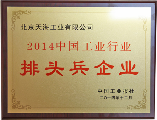 12月13日,由中国工业报主办的2014中国工业行业排头兵企业发展论坛在京召开。会上,北京天海工业有限公司荣获“2014年中国工业行业排头兵企业”荣誉称号。